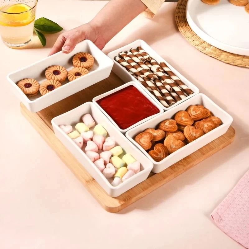 Ceramic Bowl & Bamboo Tray Set