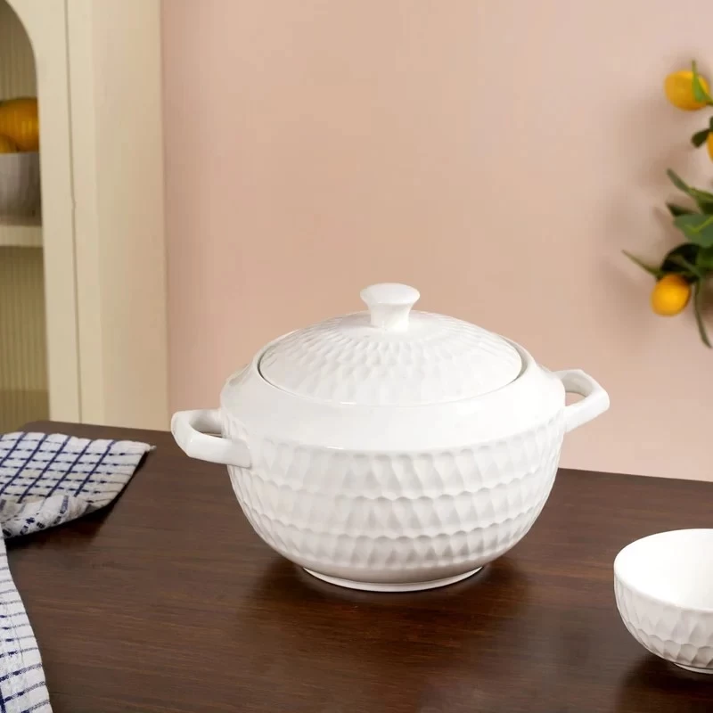 The White Stoneware Bowl & Pot Combo features an elegant, clean design with a durable finish, making it perfect for both serving and décor while adding a modern and versatile touch to any space.